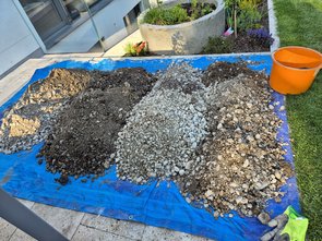Schönes Wetter, also ab raus und am Lichtgrabeneck ein paar Pflanzen temporär raus. An Eibe gegraben und Leitungen gefunden. Keine Chance, da ranzukommen. Also Eibe raus :-( Dann die Leitungen gefunden. Alles ok. Ich hatte ein Brett und eine Bautenschutzmatte drüber gelegt. Dort kein Fehler. Außer, dass die Leitungen leicht nach unten abzweigen. Also weiter entlang des Rohrverlaufs gegraben. In Summe habe ich wohl 300-400 Liter Kies und Erde ausgegraben. Leitungen dann gefunden. MIt Mama dann diverse Versuche gefahren: eine aufgeschnitten und prompt eine erwischt, wo ein Kabel drin war. Gleich wieder verschlossen. Die nächste: Treffer. Aber wo ging die hin?! Nicht gefunden, nächste. Und Volltreffer: das war die, wo das abgerissene Glasfaserkabel aus der Schleuse drin war :-))) Ging nicht immer alles in jede Richtung, aber am Ende des Tages hat die Schleusenleuchte ein Stromkabel und auch vom Lichtgrabenschacht aus das Kabel in den Haustechnikraum schon eingezogen :-) Kann ich dann mal an einem Abend nächste Woche anschließen :-) Tests dann abgebrochen, da das Haken nach 60 cm der Beweis ist, dass mir die Kiesjungs die Leitungen irgendwie bissl nach unten gedrückt haben und es deshalb hakt. Kein Beton drin, nicht vom Abdichter angeschmolzen, nicht von mir mit Erdbohrer beschädigt. Muss ich wohl das Super-Einzugsgerät ausleihen/kaufen, das eine Torsion auf das Einzugskabel bringt. Kabel gingen dann nämlich ohne Probleme durch.