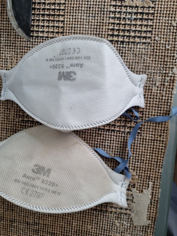 Maske nach 1 h Einkaufen vs. Maske nach 3 h Hilti